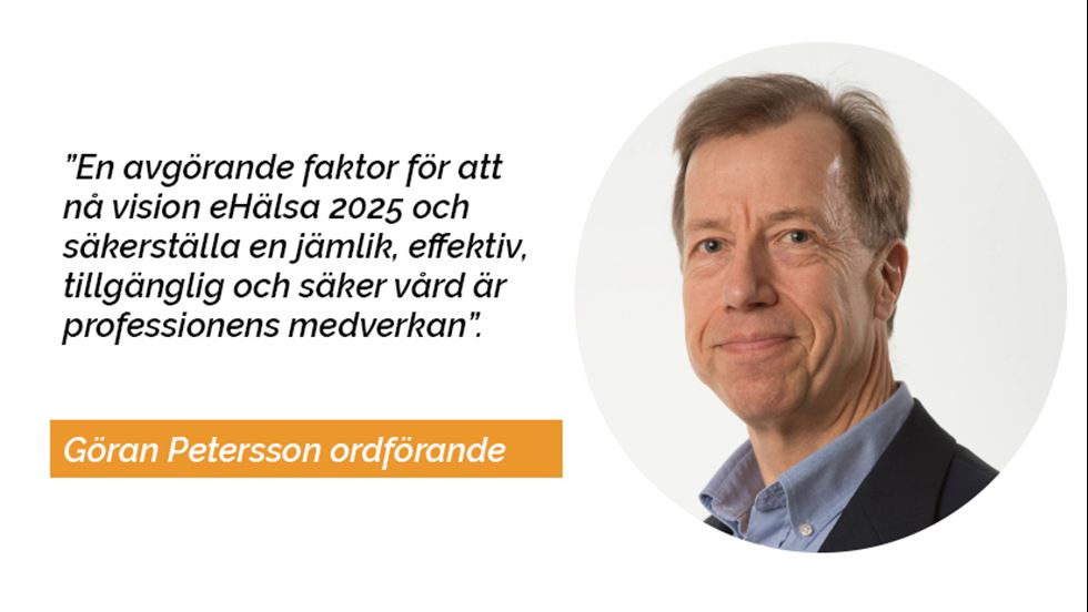 Göran Petersson, professor emeritus i hälsoinformatik, eHälsoinstitutet, Institutionen för medicin och optometri, Linnéuniversitetet, Kalmar; docent önh-sjukdomar, lärare och forskare inom digital medicin, rådgivare till Region Kalmars ehälsosatsning, adjungerad i SLS delegation för medicinsk kvalitet, ledamot i SIS arbetsgrupp för hälsoappar och i nationella expertgruppen för kvalitetssäkring av hälsoappar.