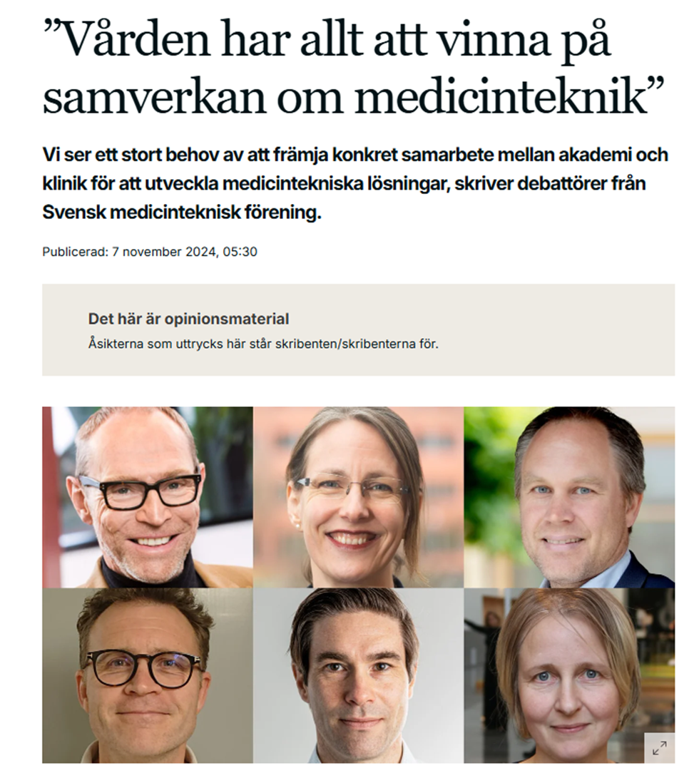 Read the full article, in swedish, Dagens Medicin ”Vården har allt att vinna på samverkan om medicinteknik”