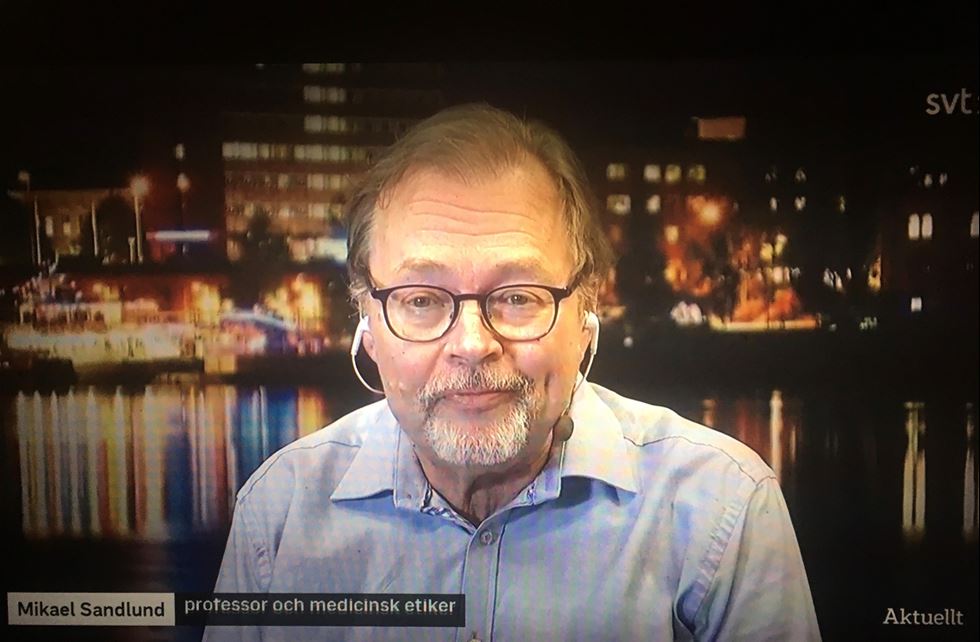 Mikael Sandlund, ordförande i Svenska Läkaresällskapets delegation för medicinsk etik medverkade 2020-12-29 i Aktuellt om så kallade "Vaccininpass".