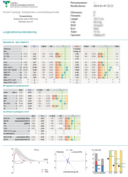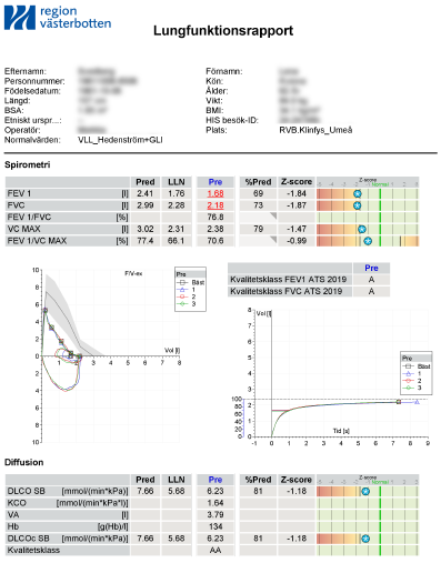 Här publiceras nu preliminärt olika exempel på rapportblad för spirometri.