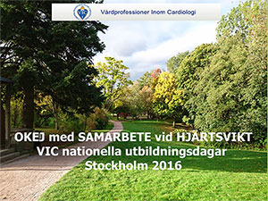 Presentationer från VIC Nationella utbildningsdagar i hjärtsvikt, 20-21 oktober 2016 Folkets Hus, Huddinge centrum Stockholm på temat ”OKEJ med samarbete vid hjärtsvikt”